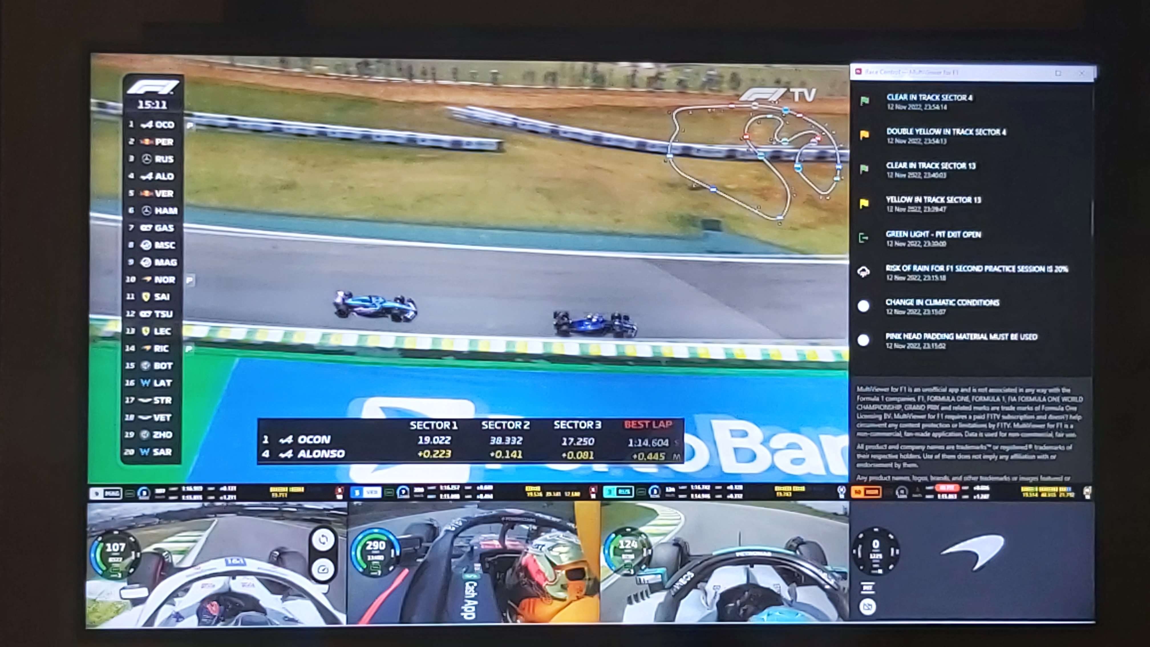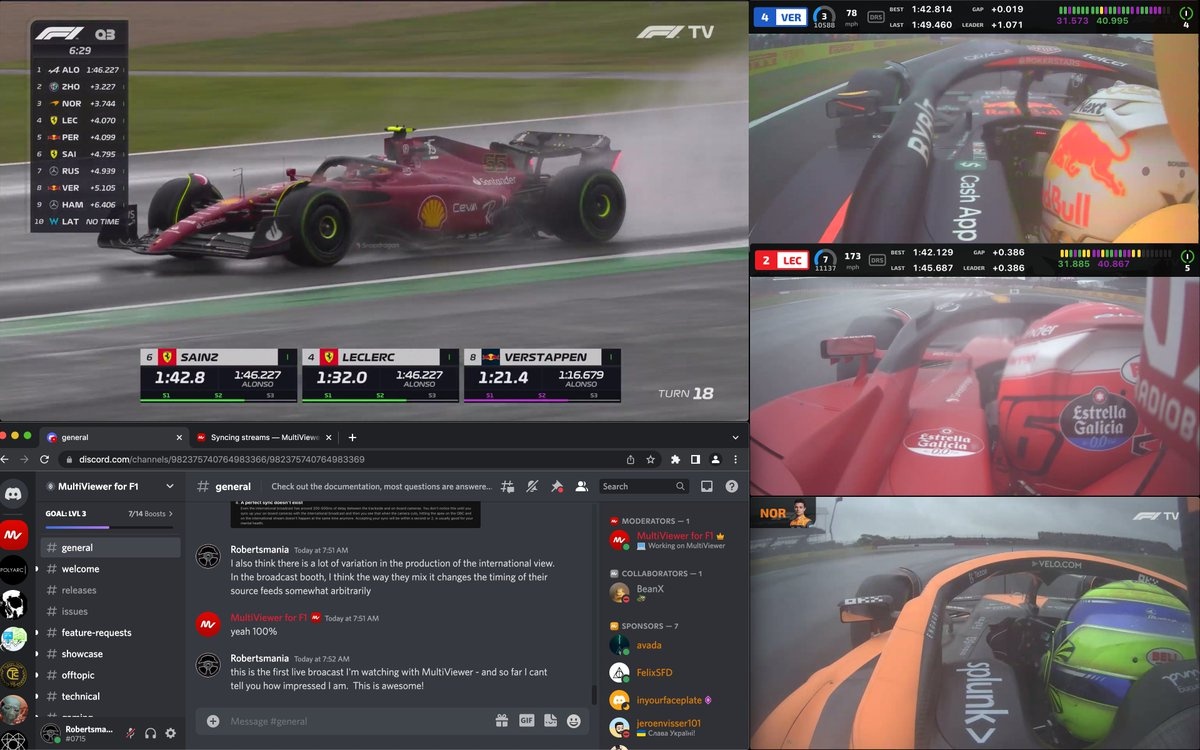Some links on this website are affiliate links. This means that if you click on the link and purchase the item, it supports the development of MultiViewer. This is at no additional cost to you. MultiViewer is an unofficial app and is not associated in any way with the Formula 1 companies. F1, FORMULA ONE, FORMULA 1, FIA FORMULA ONE WORLD CHAMPIONSHIP, GRAND PRIX and related marks are trade marks of Formula One Licensing BV. MultiViewer requires a paid F1 TV subscription and doesn't help circumvent any content protection or limitations by F1 TV. MultiViewer is a non-commercial, fan-made application. Data is used for non-commercial, fair use. All product, teams and company names are trademarksโข or registeredยฎ trademarks of their respective holders. Use of them does not imply any affiliation with or endorsement by them. Any product names, logos, brands, and other trademarks or images featured or referred to within the app are the property of their respective trademark holders. These trademark holders are not affiliated with MultiViewer or its contributors. They do not sponsor or endorse MultiViewer or any of our products.